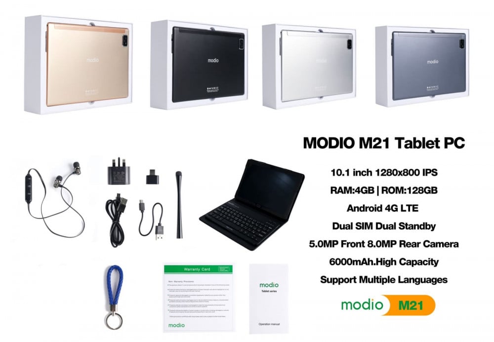 Modio M21 Tablet Pc 10.1 Inch 4 GB Ram 128 Gb ROM Android 4g lte
